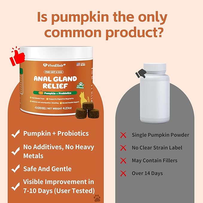 Constipated Cat - Pumpkin + Probiotic Soft Chews - Promotes Digestive Health, Regular Bowel Movements, and Intestinal Balance | Veterinarian-Approved, 120 Chewable Tablets