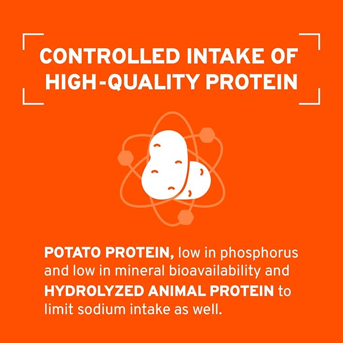 - INGREDIENTS: Formulated with hydrolyzed protein and potato protein for controlled phosphorus and adapted protein content. Enriched with cranberries, dried dandelion, and dried clover extract to support kidney health. Free from GMOs, by-products, wheat, soy, artificial colors, or preservatives.