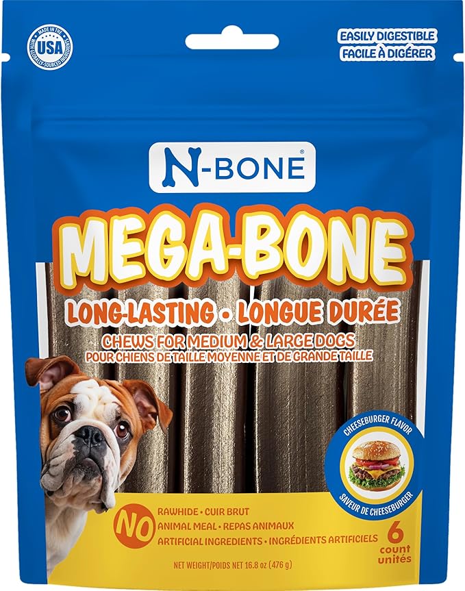 N-Bone Mega-Bone Long-Lasting Dog Chews, Cheeseburger Flavor, 6count, 16.8oz