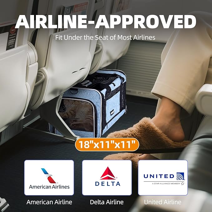 - Flight-Ready Features - This puppy pet crate fits under seats on American, Delta, and United flights. An adjustable shoulder strap for convenient airport trips and a collapsible design for easy storage. *Please always verify carrier dimensions with your airline 72hrs pre-flight