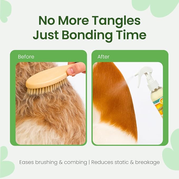- DETANGLING AID: This effective dog detangler spray works as a detangling spray, helping to remove knots easily while making brushing more comfortable for your pet.