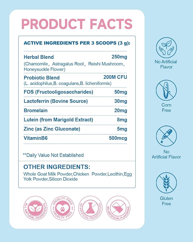 - Premium Natural Blend : Our dog tear stain supplement formula combines Chamomile and Astragalus Root, Reishi Mushroom, Honeysuckle Flower, Probiotics, Bromelain, and Lutein, working to support your dog’s digestive and immune health, helping to manage tear stains effectively
