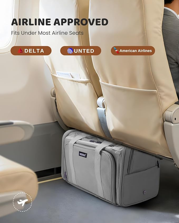 MIDOG Cat Carrier Soft, TSA Approved Airline Travel Carrier for Cats and Small Dogs, Under Seat Pet Bag with Expandable Space & Escape-Proof Zippers (Charcoal)