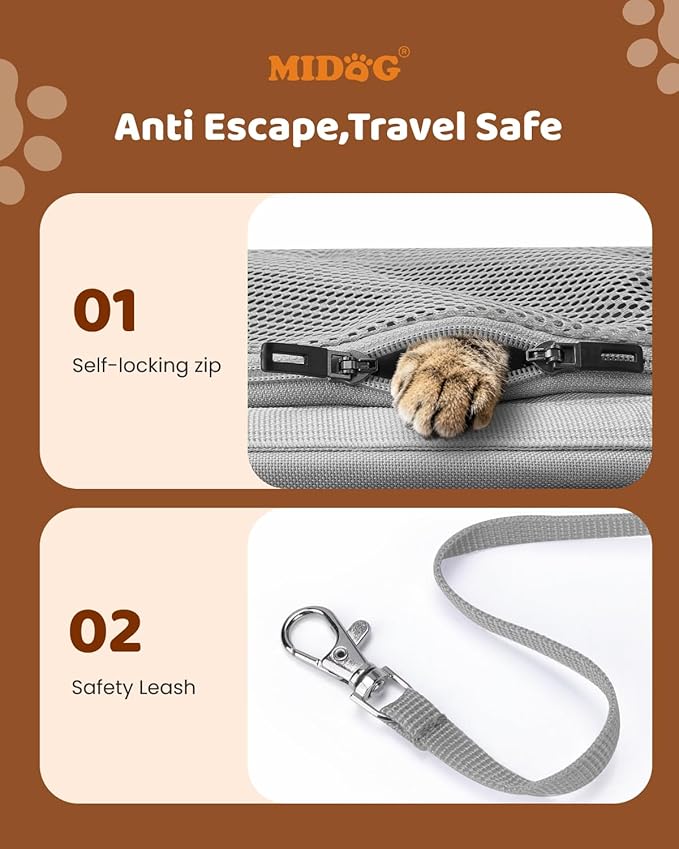 - 【Secure & Escape-Proof】Safety is non-negotiable. We've equipped this carrier with upgraded, pet-proof locking zippers and an internal safety leash. You can rest assured your furry friend is securely contained, whether you're on a plane or a busy street