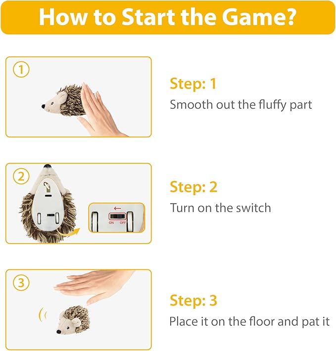 - Life-Like Hedgehog Cat Toy: The cute automatic cat toy features ultra-realistic squeaks and unpredictable movements (forward and backward).The cat enrichment toys mimic real prey to trigger your cat's natural hunting instincts. Its size is perfect for all breeds of cats and small dogs, only for pet play