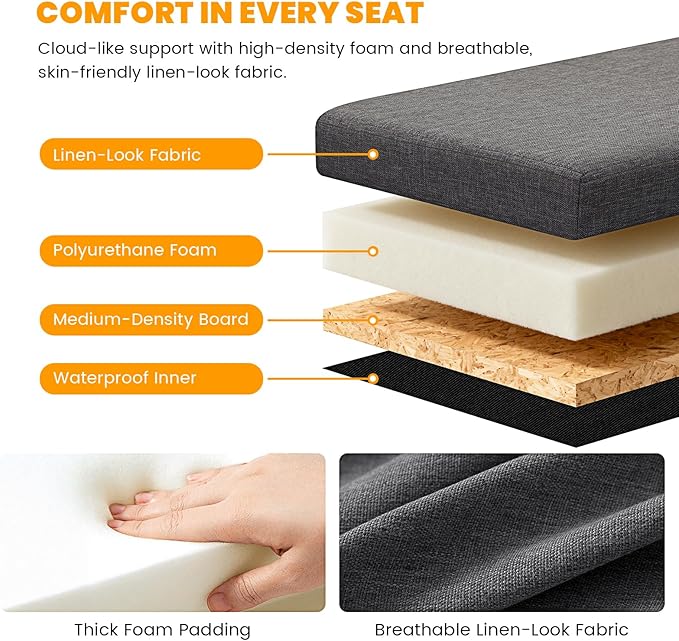 3-in-1 Cat Litter Box Enclosure with Odor Control, Multi-Functional Hidden Litter Box Furniture Bench, Dog Proof, Space-Saving Ottoman Cabinet with Flip-Up Lid, Storage Footrest, Dark Grey