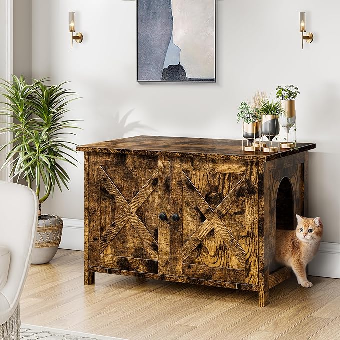- 【Multifunctional Litter Box Enclosure】: This litter box cabinet fits anywhere in your room. Not only practical but will also be an ornament that adds a warm farmhouse vibe to your home. With simple and clear instructions and part numbers, you to overcome the fear of assembly.
