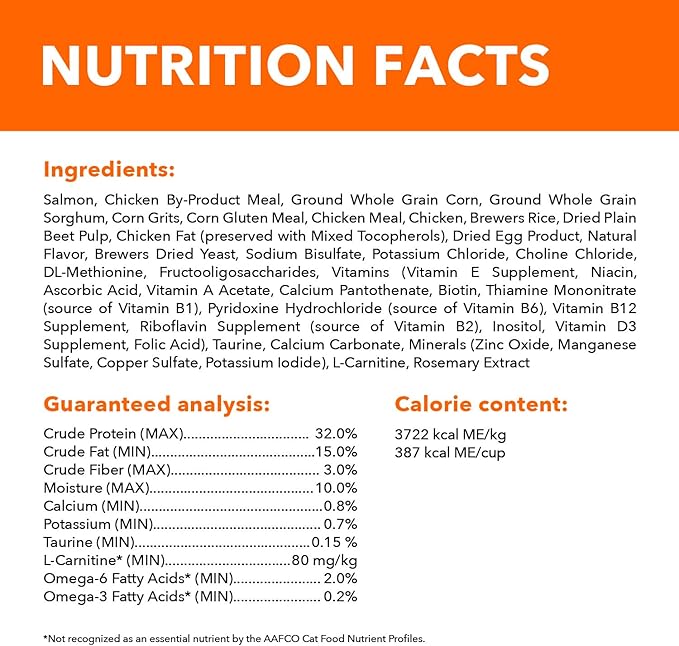 - Nourishes Skin and Coat: IAMS Proactive Health adult cat food is formulated with an optimal Omega 6:3 fatty acid ratio to help promote healthy skin and a glossy coat for your adult cat