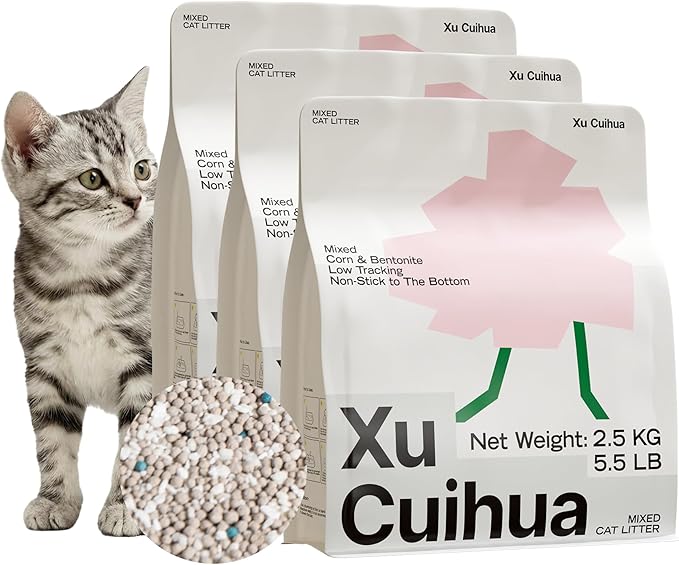 Bentonite Mix Cat Litter, Strong Clumping Litter, Odor Control, Easy Scooping, Clumps Lift Cleanly, Low Dust, Corn & Cassava Litter, 5.5 LB x 3 Bags