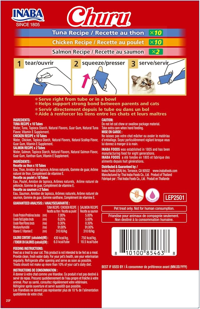 - ADD SOME VARIETY TO YOUR CAT'S LIFE: Available in eleven savory flavors, Churu treats are loved by cats of all ages, from playful kittens to senior companions.