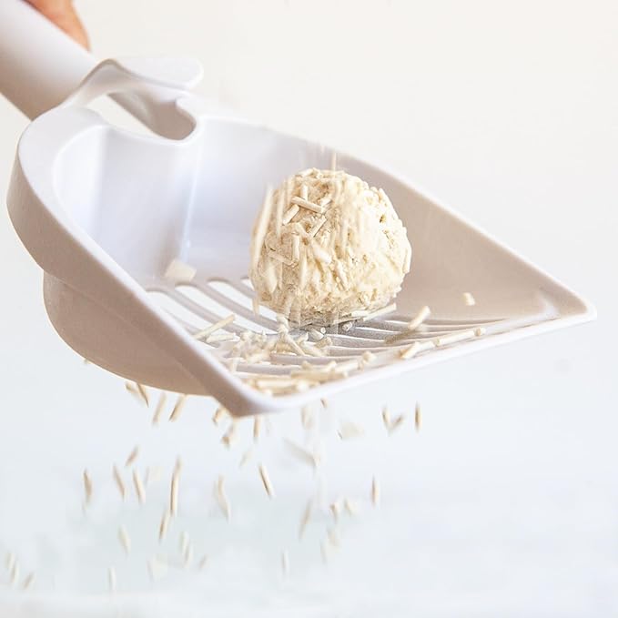 - 【Smart Hook Design – Hang on the Litter Box】Each scoop handle has a right-angle hook, allowing you to hang it directly on the edge of the litter box when not in use. Keeps your cat litter cleaning tools tidy, accessible, and off the floor.