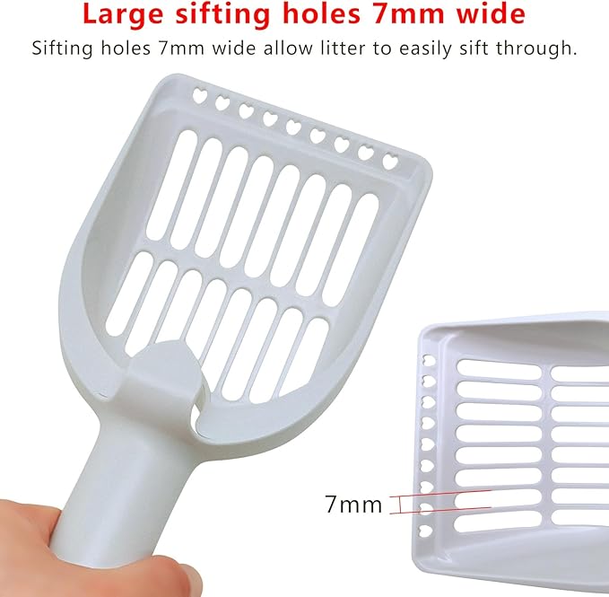 - 【Quick Sifting Design – 7mm Wide Slots】Engineered with 7mm wide large holes, this cat pooper scooper quickly separates clean litter from clumps. Enjoy faster cleaning with less mess — saving time during daily cleaning.