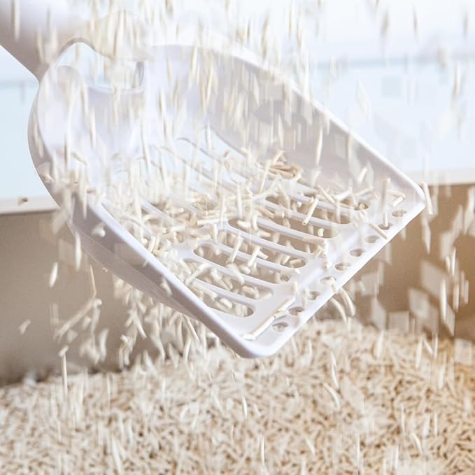 - 【Comfortable Long Handle – Easy Grip】Features a 5.9-inch ergonomic handle that provides a secure, non-slip grip for comfortable use. Reduces wrist strain and makes litter box maintenance easier and more hygienic.