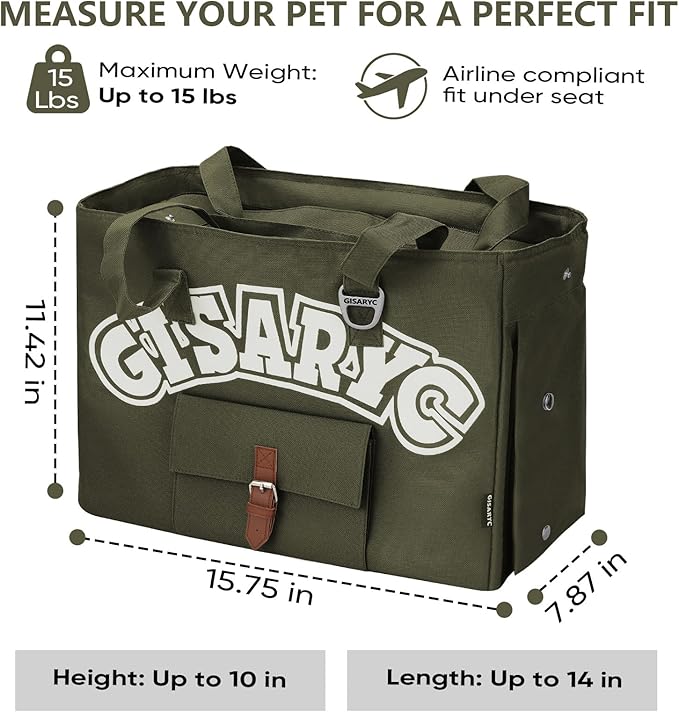 - Suitable Size: This pet travel carrier measures 15.7" L × 7.9" W × 11.4" H and is ideal for small pets up to 15 lbs, including small dogs, cats, puppies, kittens, and rabbits. Please do not choose your carrier based on weight alone; we recommend measuring your pet’s length (neck to tail base) and height (floor to shoulder) to ensure a comfortable and proper fit