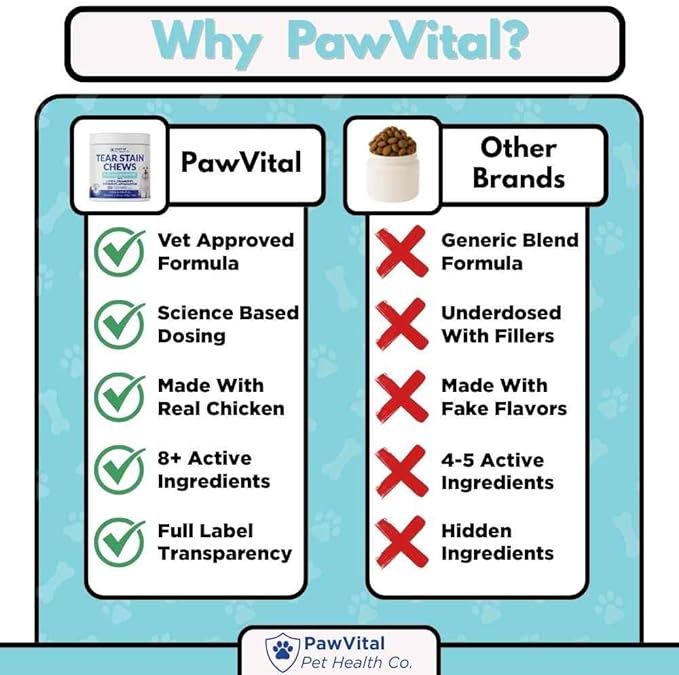 - PREMIUM TEAR STAIN SUPPORT YOU CAN TRUST – Formulated with high quality natural ingredients, our tear stain chews provide naturally driven and lasting results with consistent use. Give your dog the gift of clear eyes, healthy skin, and a cleaner, brighter face with our natural tear stain support supplement.