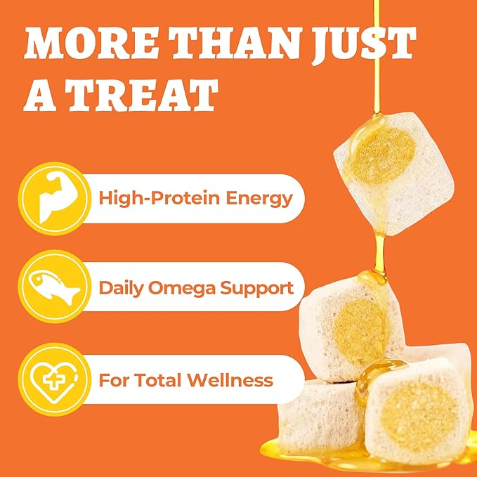 - Beyond Treats - Our cat treats contain omega 3 fish oil and vitamins for itchy and dry skin relief in cats & dogs, plus taurine and pumpkin to support heart, brain, and gut health—helping your furry friend enjoy a happier, healthier life