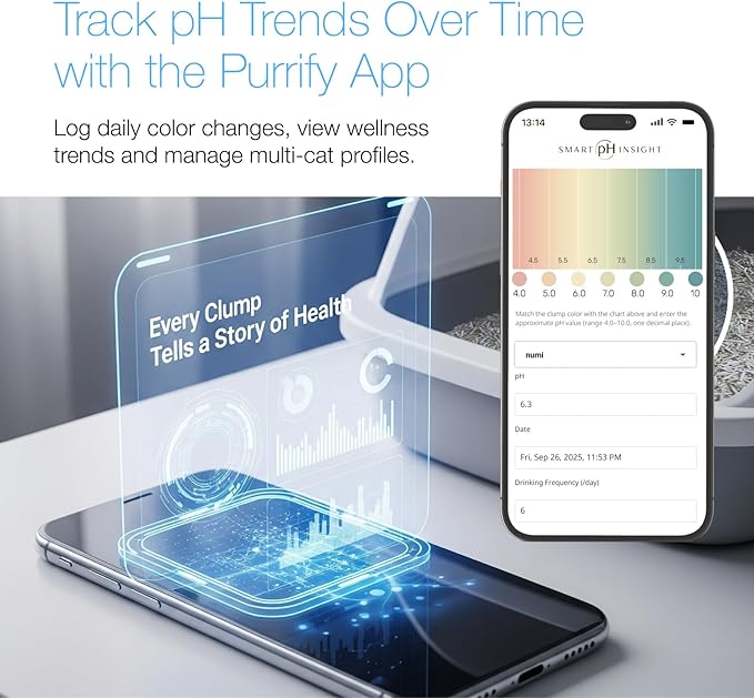 - App-Enabled Health Records & FSC-Certified Packaging The optional app allows users to log color changes and manage health records for one or multiple cats. Finished with FSC-certified paper packaging and a biodegradable, plant-based formula.