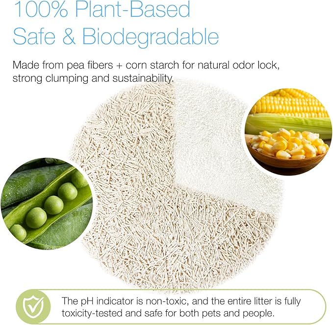 - Odor Control with Plant-Based Pea Fiber Naturally derived pea fiber helps absorb and lock in odor at the source, supporting a fresher litter box in everyday home environments.